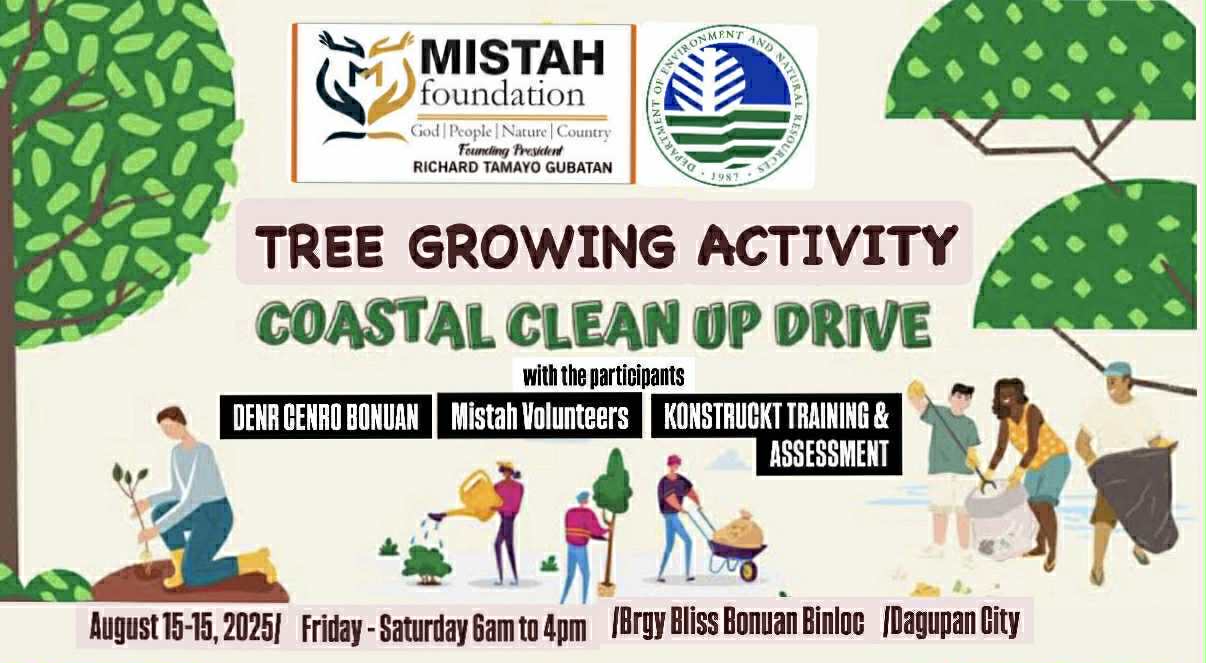 Mistah Foundation USA, together with DENR CENRO Bonuan, Mistah Volunteers, and Konstruckt Training & Assessment, successfully conducted a combined Tree Growing Activity and Coastal Clean-Up Drive last August 15–16, 2025 at Brgy. Bliss Bonuan Binloc, Dagupan City. The two-day activity highlighted the importance of environmental stewardship and community participation in restoring coastal ecosystems. The photos